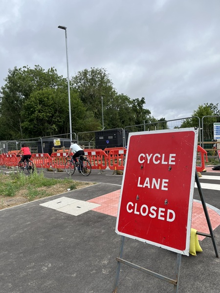 Only one lane of the two-lane cycle lane was closed, the works are alongside the lane, it's not been dug up already!